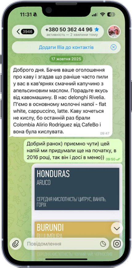 Не сподобалась кава – замінимо на нове зерно або повернемо гроші.
